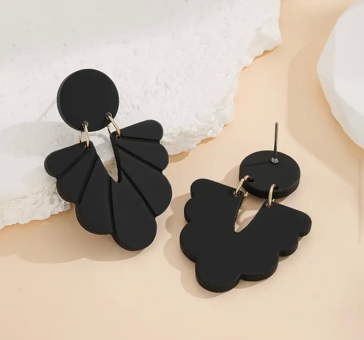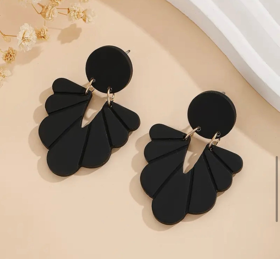 Black Carved Pattern Earrings Soft Pottery Texture Acrylic Dangle Earrings Vintage Earrings.