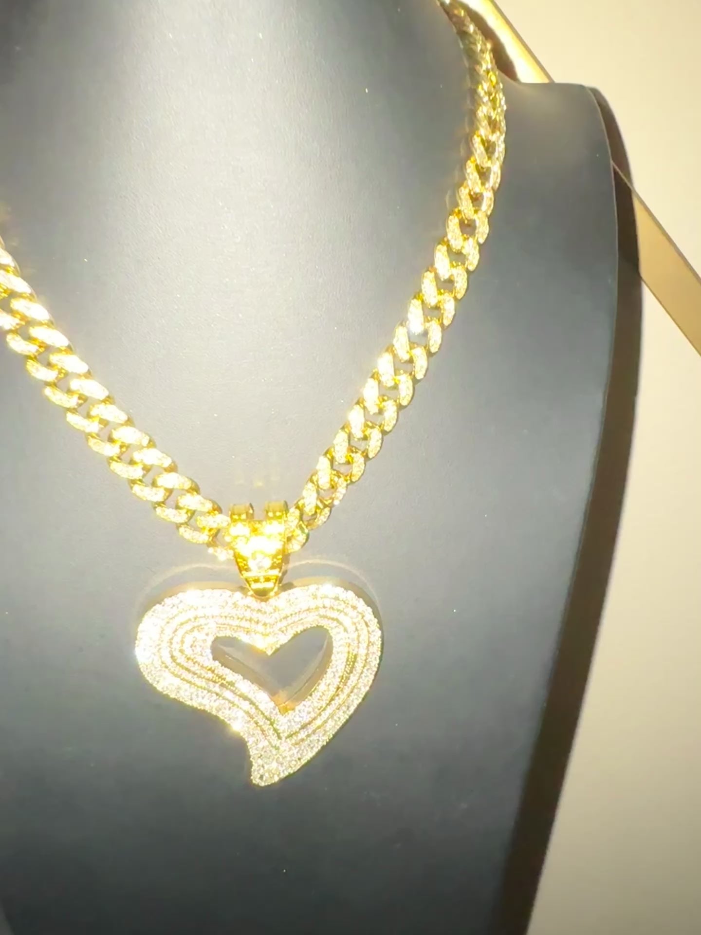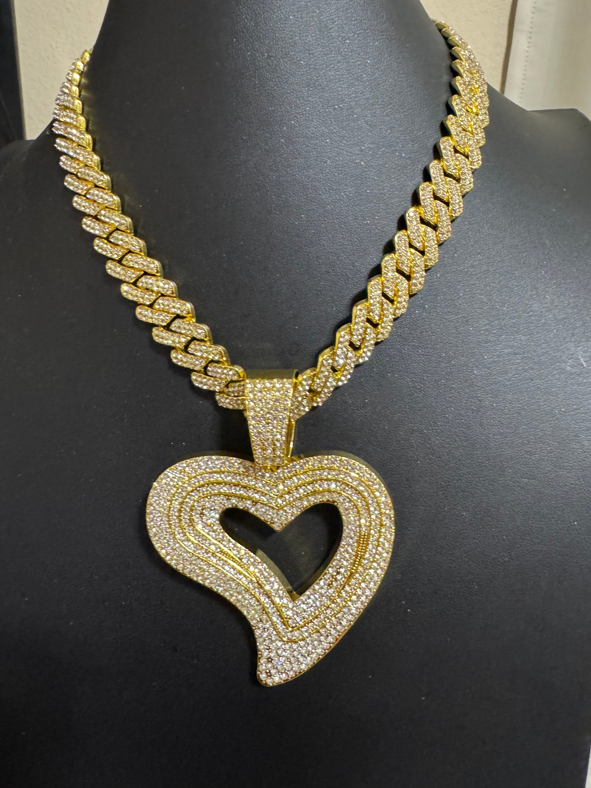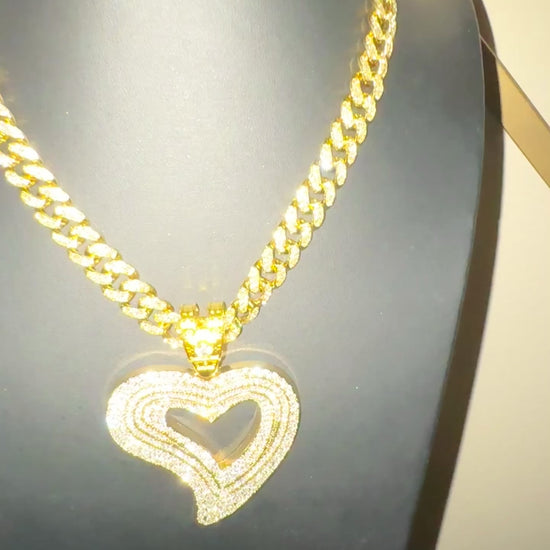 20” Hearly-shaped pendant Cuban chain necklace fashion personality love pendant necklace