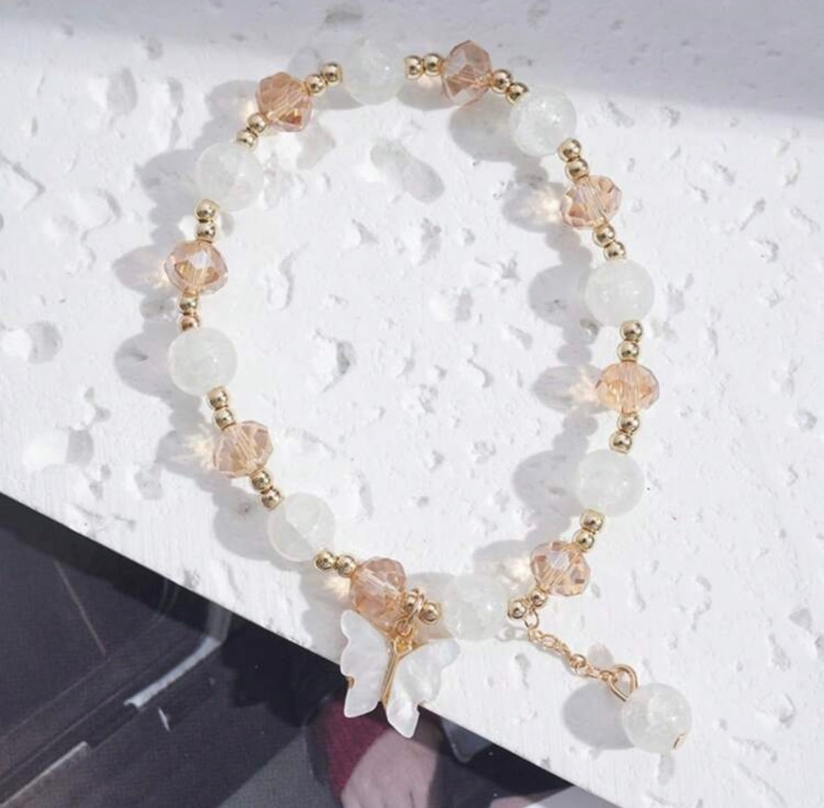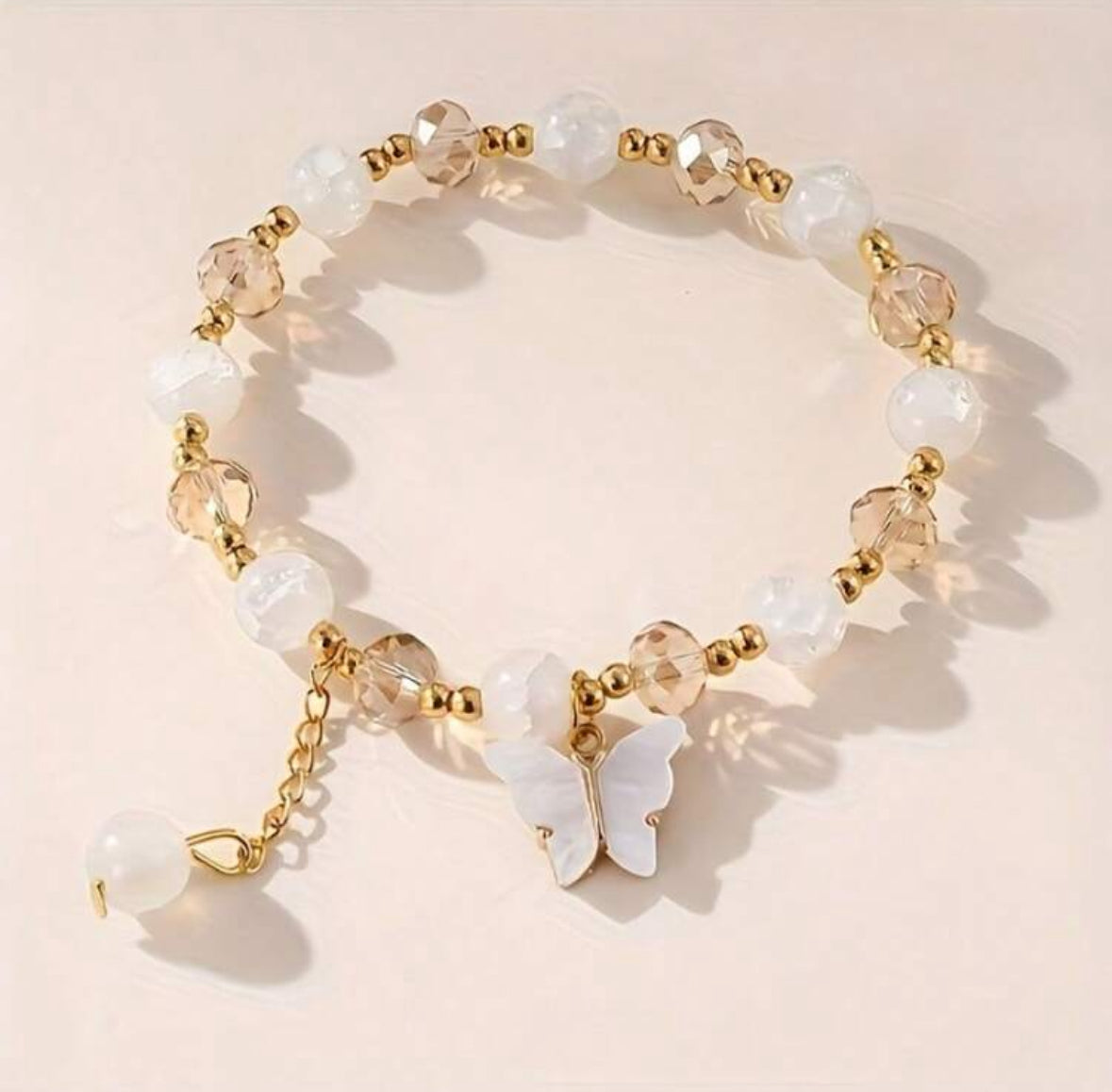 1pc Sparkling Butterfly Charm Bracelet - Exquisite Faux Crystal Beading with Intricate Crackled Pattern - Adorable Fashion Accessory For Young Style Enthusiasts