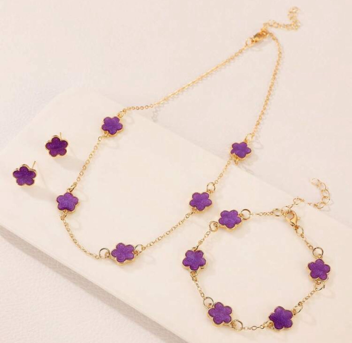 Purple clover 3 piece set includes Necklace, bracelet and Kandy for your ears. 1 set