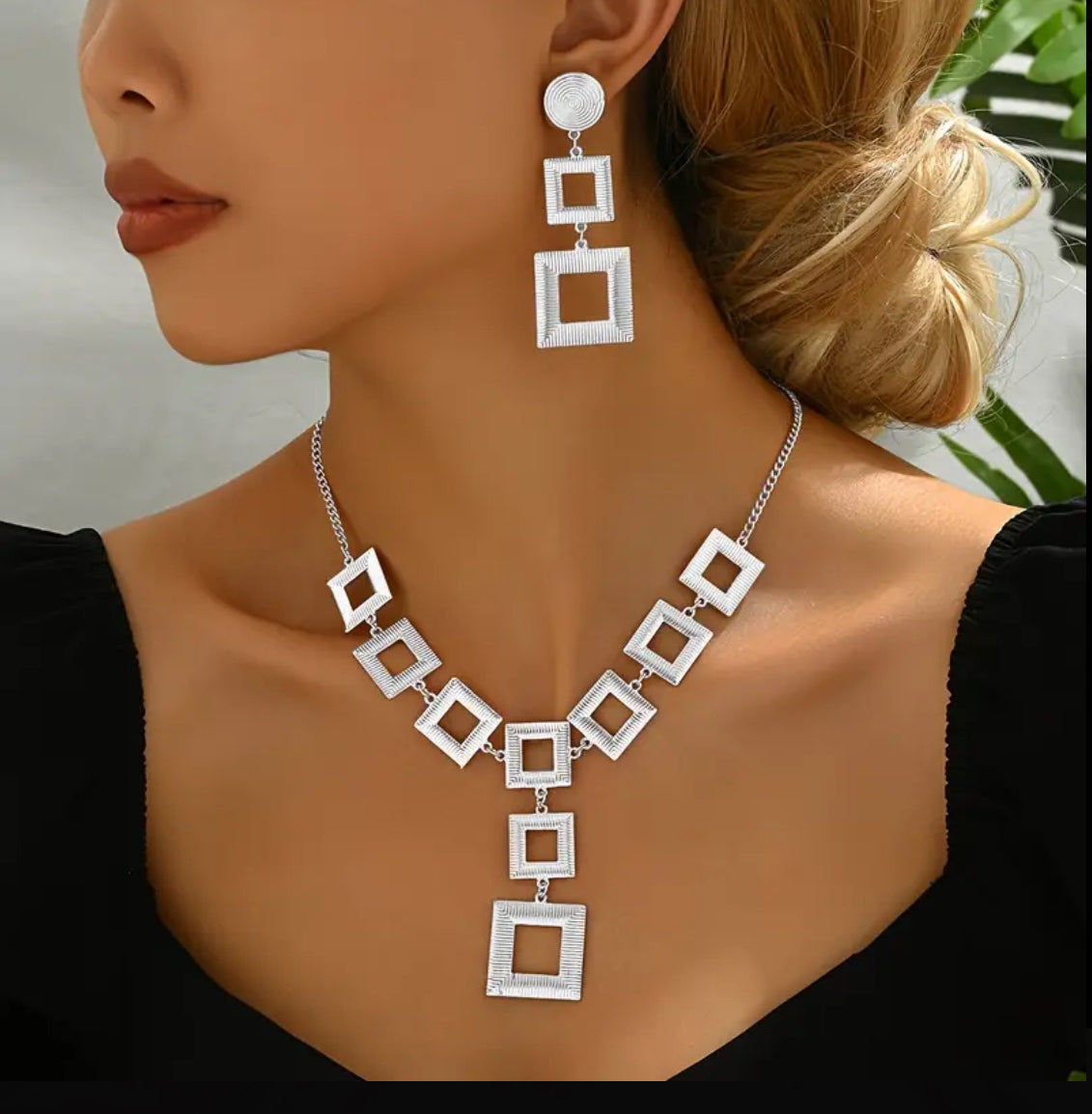 Stylish Hollow Square Geometric Necklace Set