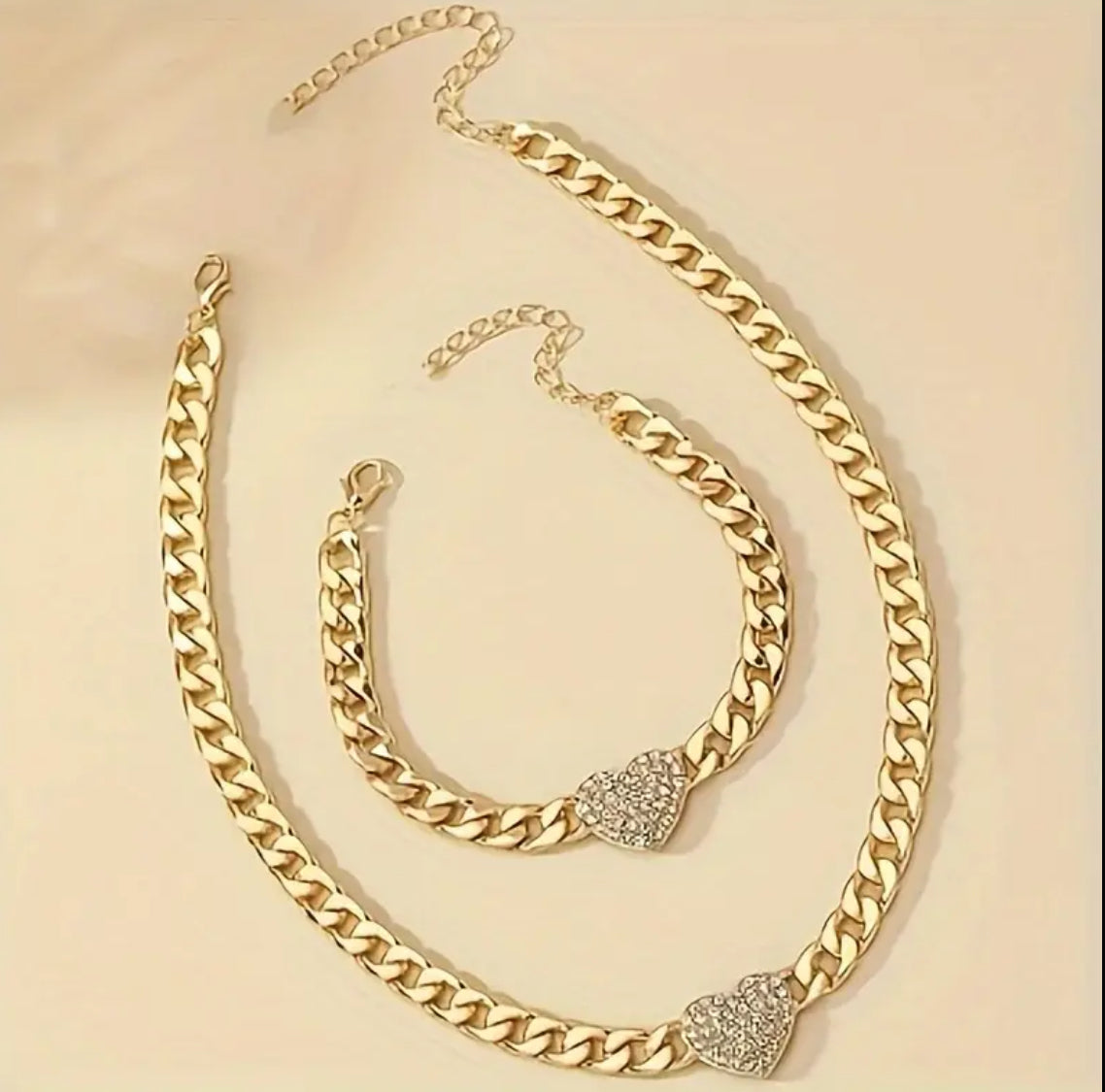 Chic rhinestone Heart Necklace + matching bracelet set. set includes 1 necklace 1 bracelet