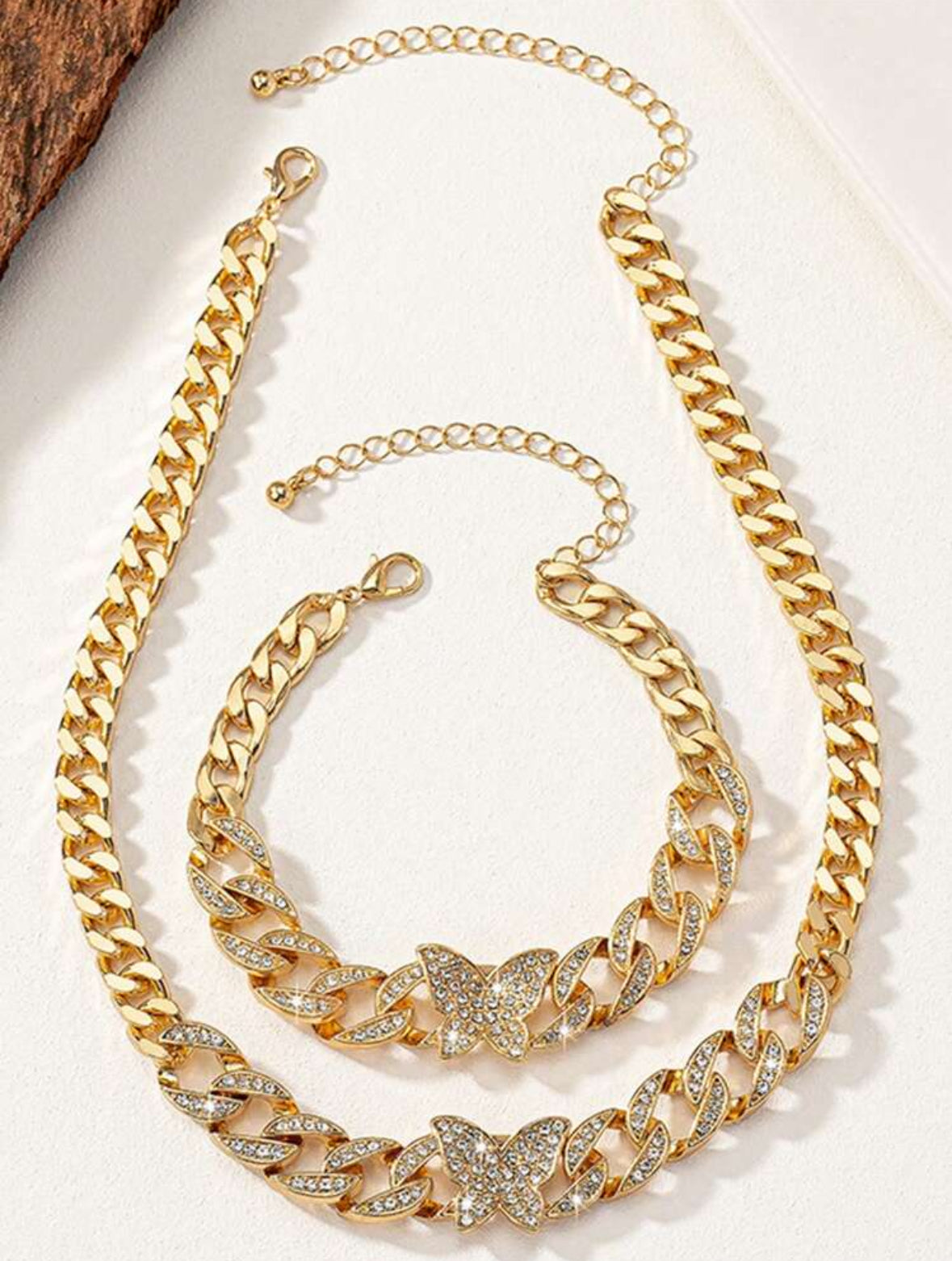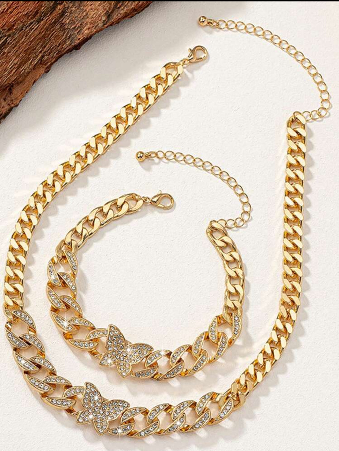 1set Rhinestone Encrusted Bracelet And 14k Gold Plated Necklace set. 1 necklace 1 bracelet