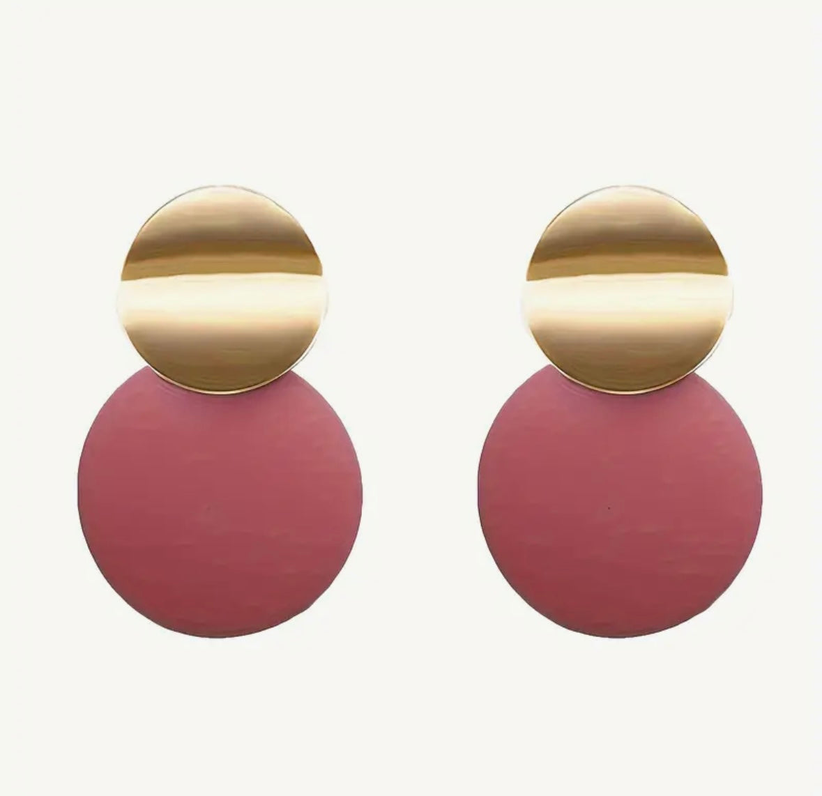 Elegant gold tone and pink circle shaped earrings.
