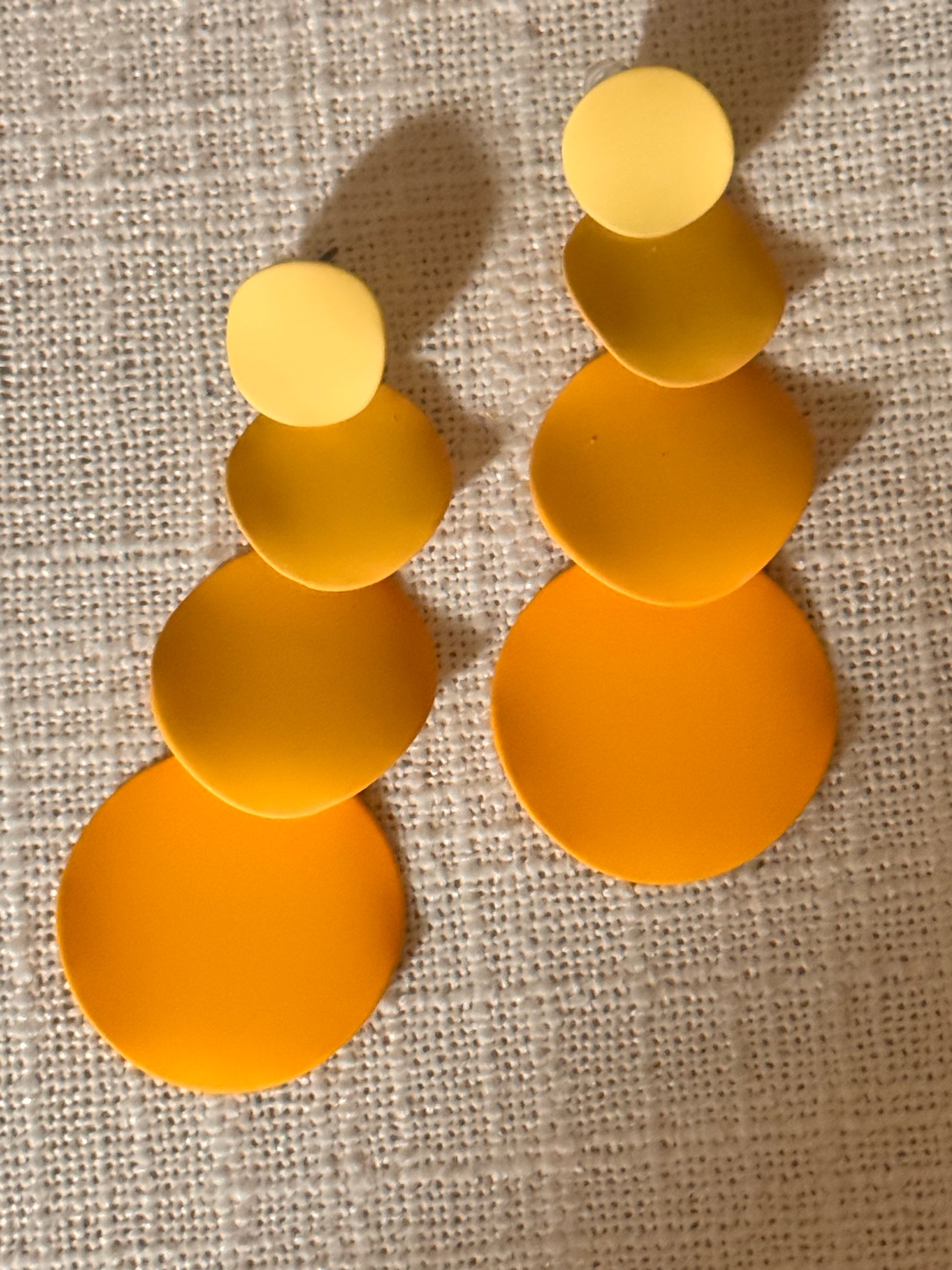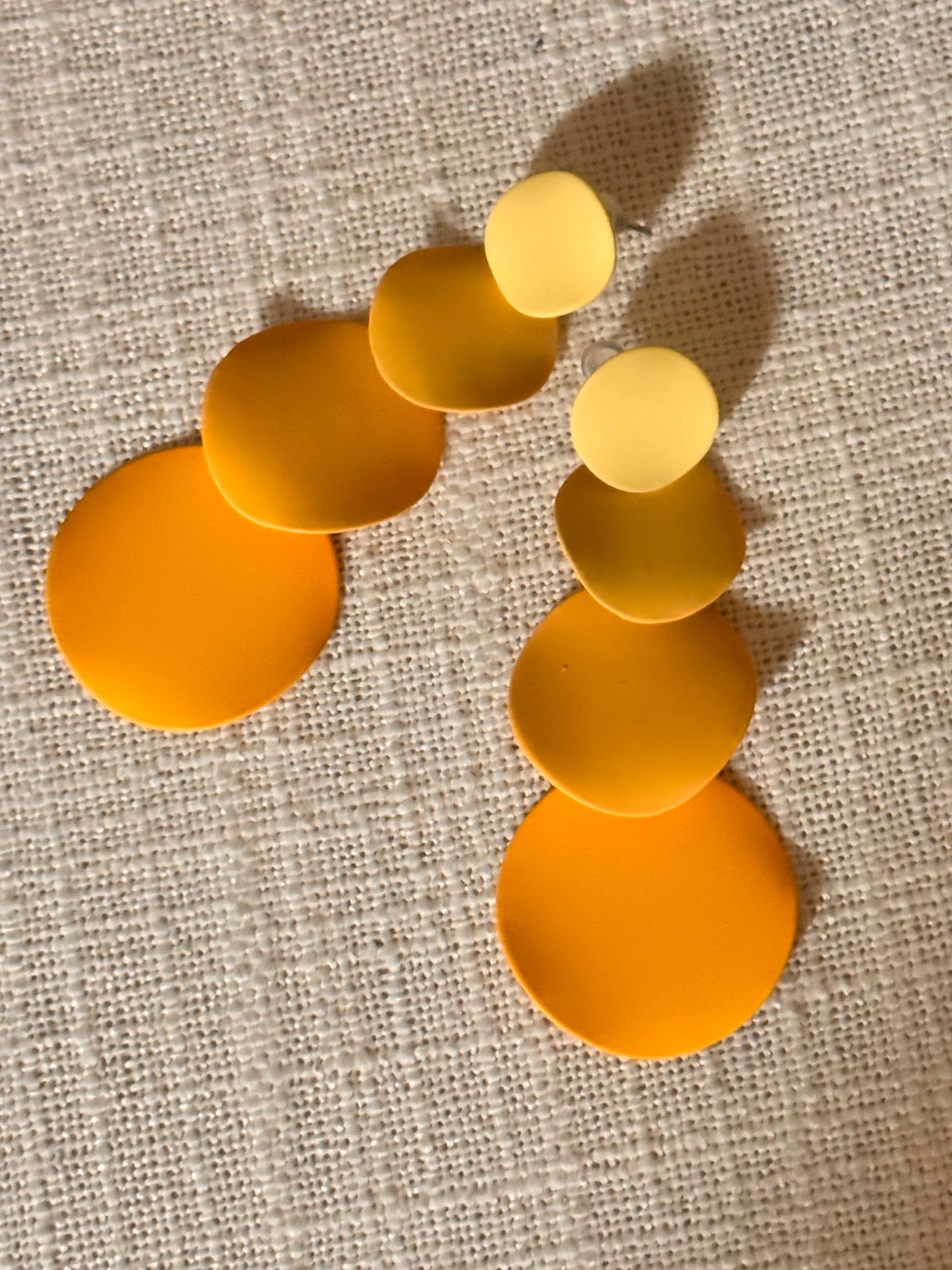 Various shades of yellow, circle shaped post back earrings.