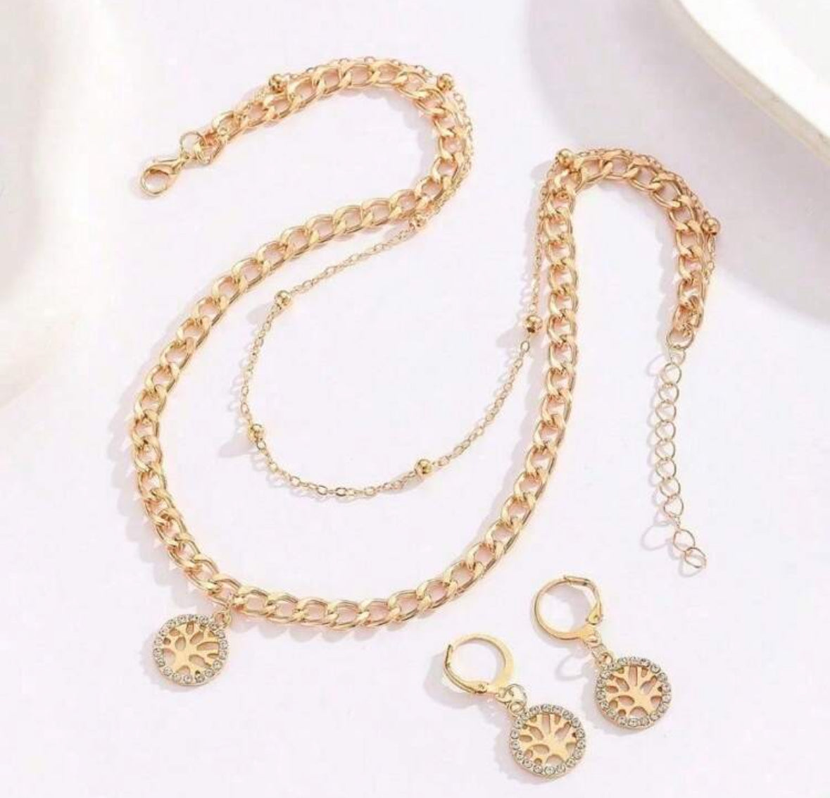 Tree of Life two layer necklace set in a gold tone and beautiful gems.