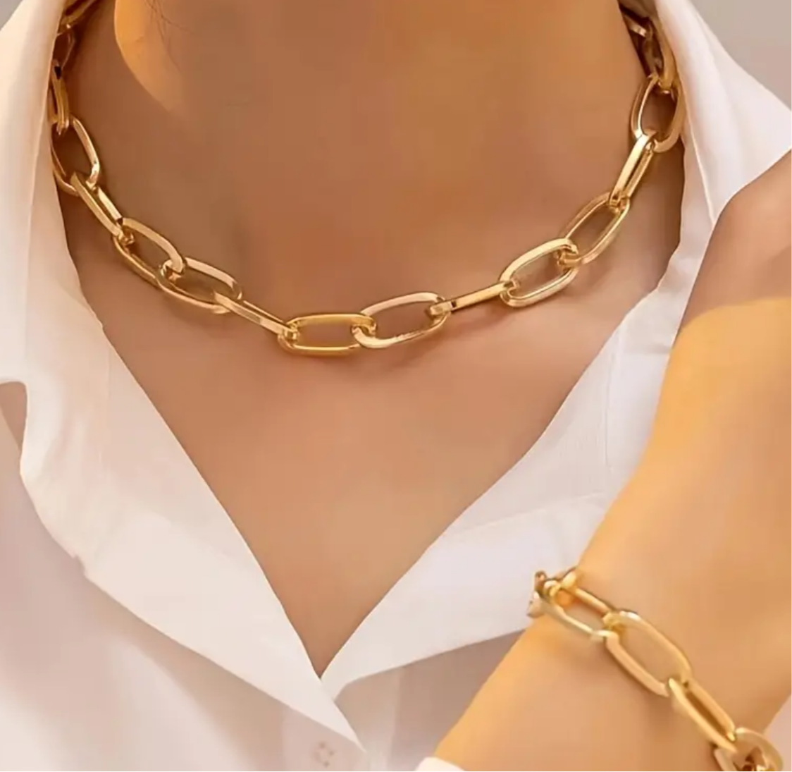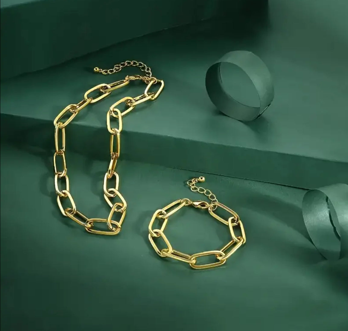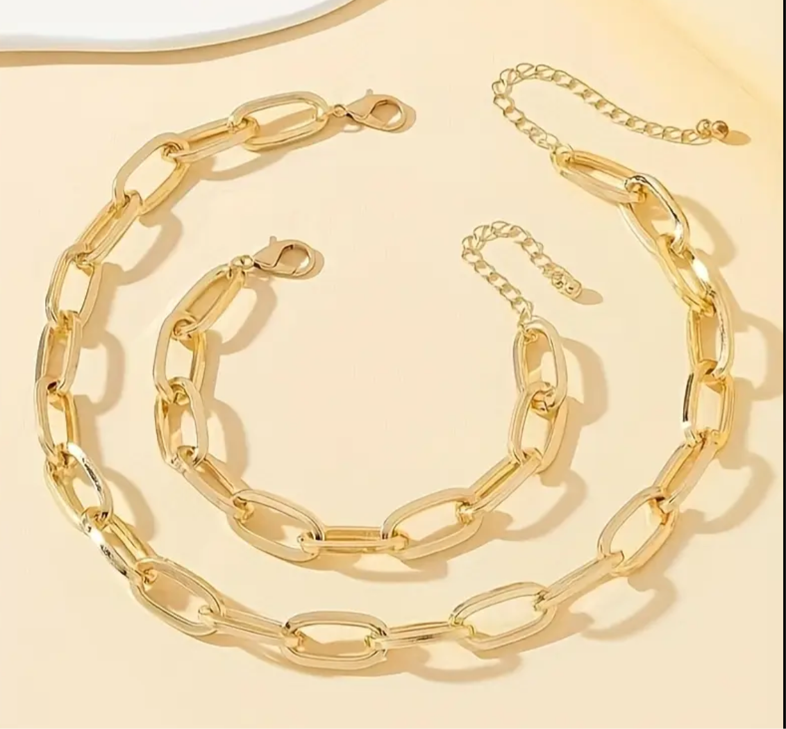 2pcs Elegant Golden Stainless Steel Bracelet & Necklace Set for Women - 1 necklace 1 bracelet